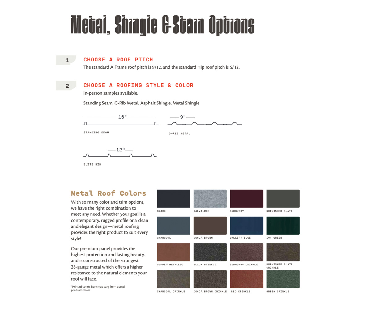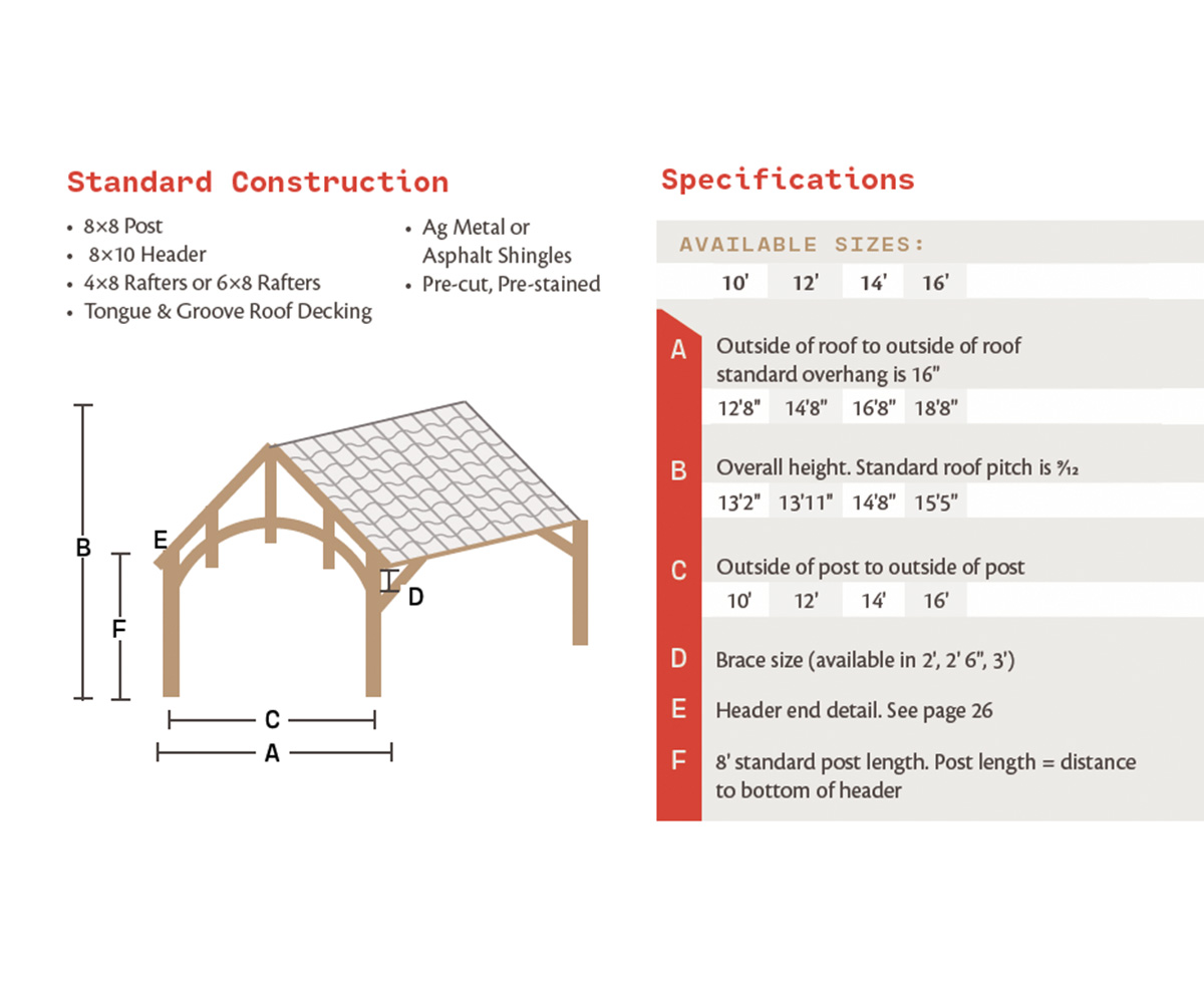 The Alpine Lodge creates a open-air, shaded patio cover or carport and offers more of a deluxe timber frame appeal with the hammer truss gable design.